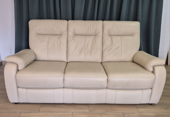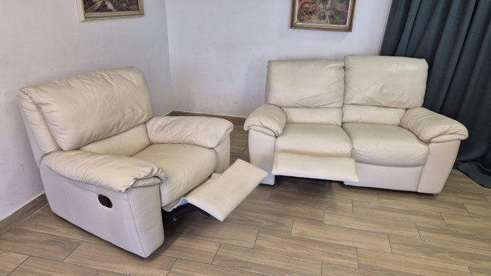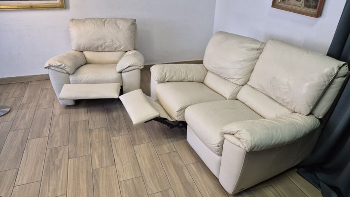 Продаються стильні шкіряні меблі з реклінером: 3-місний диван і 2-місний диванчик, бежевого кольору, у відмінному стані. Зручні, з функцією розкладання для максимального комфорту. Ціна: 950€