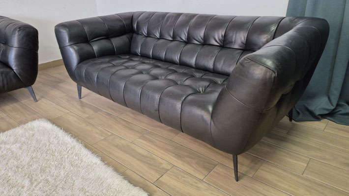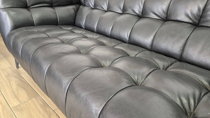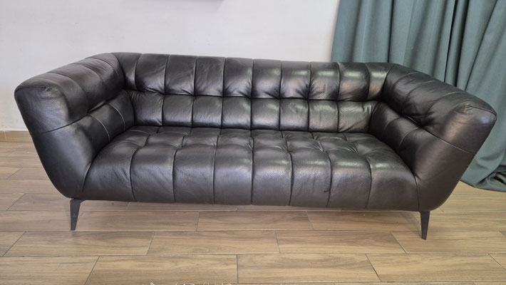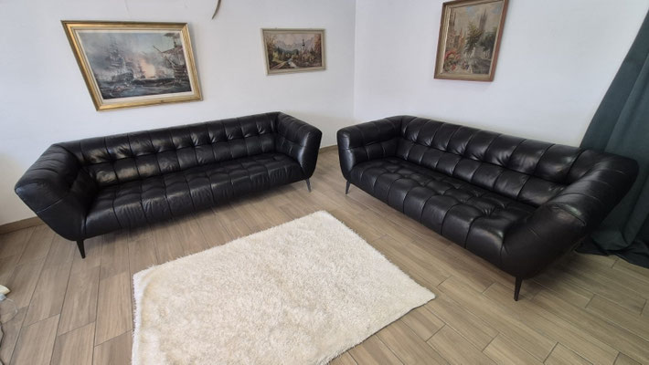 Пара елітних шкіряних диванів у стилі "капітоне" (чорного кольору, преміум-якість)