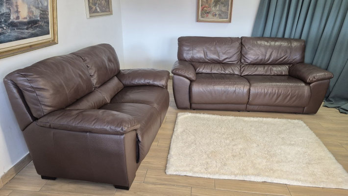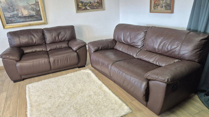 Стильні і дуже зручні шкіряні меблі з рекоайнерами. В наборі тримісний і двомісний дивани.