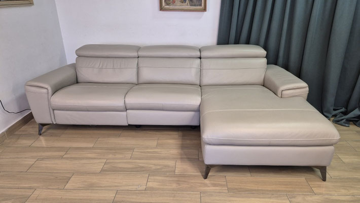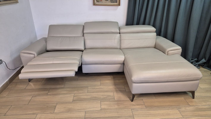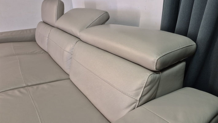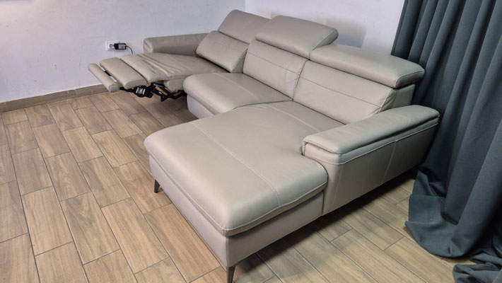 Пропонуємо стильний кутовий шкіряний диван з електрореклайнером та регулюючими підголівниками!