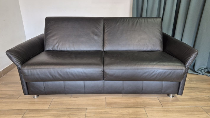 Фірмовий тримісний диван від німецього бренду Himolla. Якісна і дуже надійна конструкція, пружні сидіння, висока спинка. Високоякісна натуральна шкіра.Присутній логотип Long Life- сертифікат якості шкіри. Диван розкладний, міцна і широка спальна частина. Розміри 190/95см, спальна частина 190/150см.