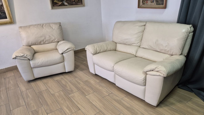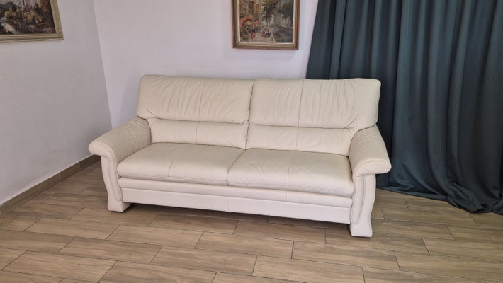 Пропонуємо комплект диванів 3+2, в обшивці з натуральної шкіри кольору слонової кістки.
