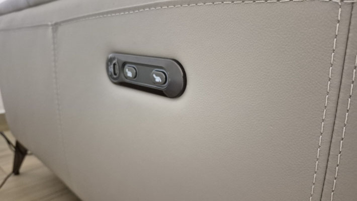 Стильний кутовий диван у натуральній шкірі. Сучасний дизайн, висока якість німецького виробника і функційність основні риси цієї моделі. У двох сидіннях вмонтовано реклайнери, кожна спинка трансформується з низької у високу, регулюється положення підголівників. В кутку скляний столик-поличка щоб було зручно поставити напої чи перекус.